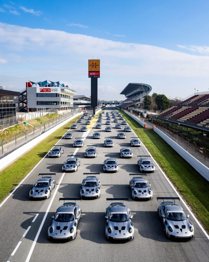 Im Rahmen des offiziellen Rollouts in Barcelona wurde der neue Porsche 911 Cup erstmals auf der Strecke präsentiert.
